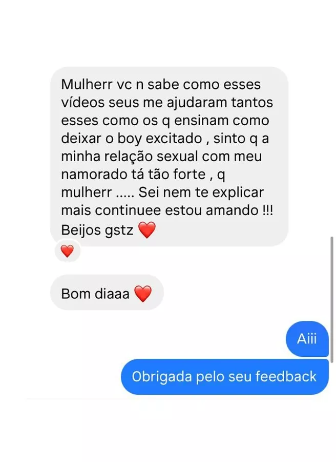 Eu dedico todos os dias da minha vida para estudar e trabalhar com o que eu amo, ajudando tantas mulheres a perderem sua insegurança e viverem plenamente suas vidas sexuais e relacionais.
